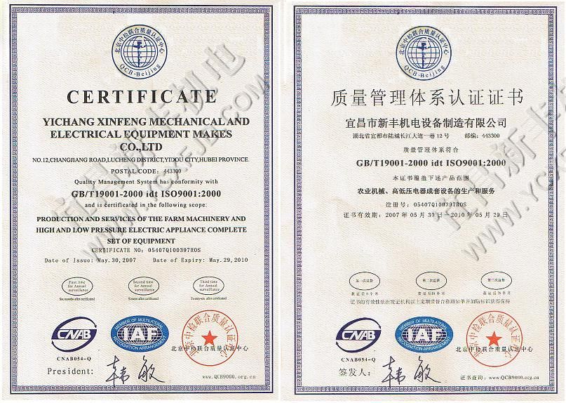 質量管理體系認證證書