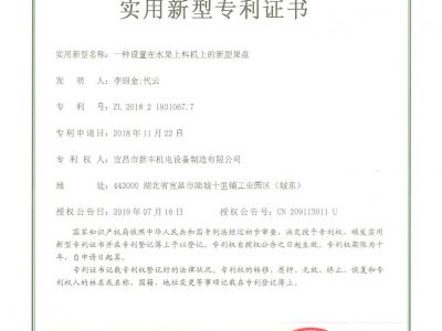實用新型專利證書《一種設置在水果上料機上的新型果盤》