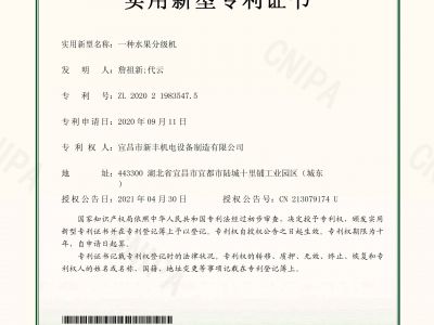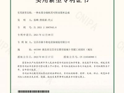 實用新型專利證書《一種水果分級機》