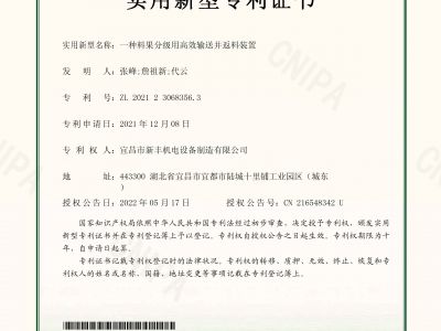 實用新型專利證書《一種料果分級用高效輸送并返料裝置》