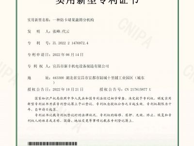 實用新型專利證書《一種防卡堵果蔬篩選機構》