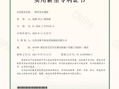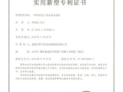 實用新型專利證書《一種多級料果篩選滾筒線驅動裝置》