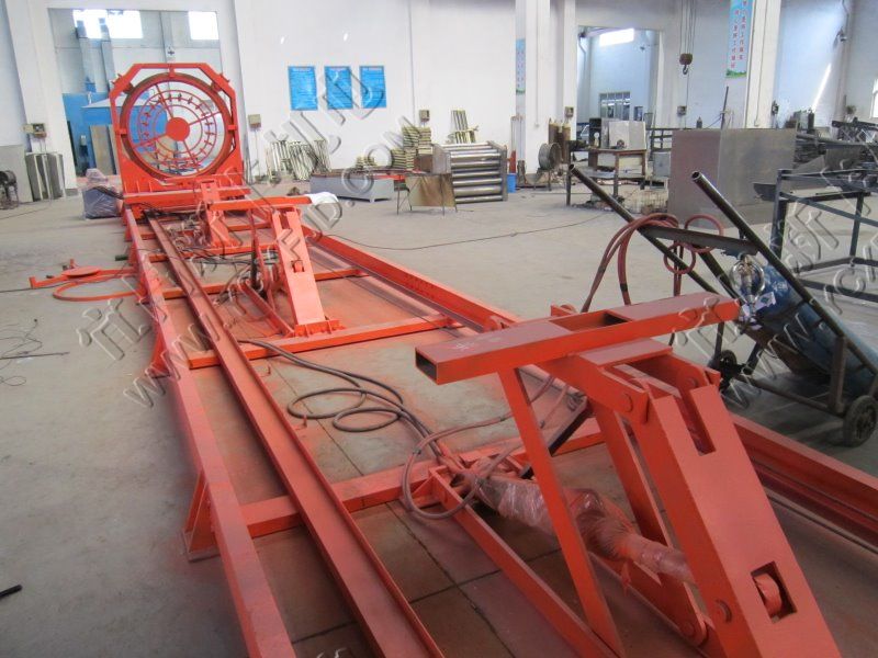上料→穿筋(主筋)→固定→搭上箍筋→開始焊接→正常焊接→終止焊接→切斷箍筋→分離固定盤→松筋→分離移動盤→卸籠→降下液壓支撐→移動盤歸位→完成
